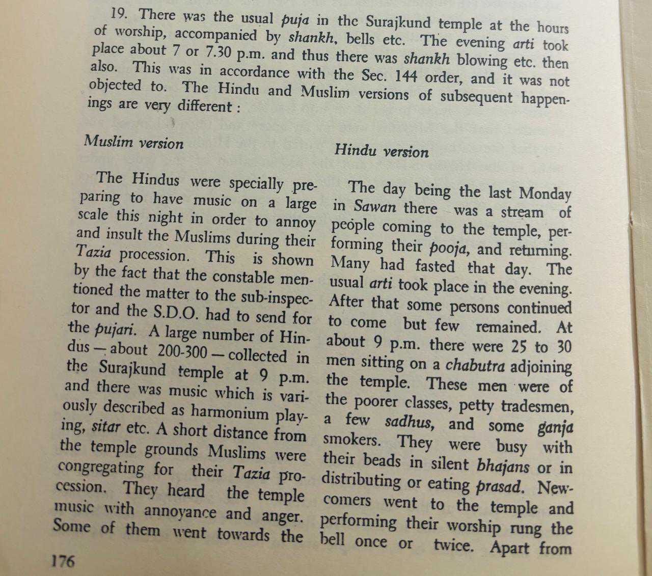 The facts of the matter were thus: A local mela conflicted with Mohurrum in Sambhal. In 1923, both communities reached an agreement that the mela would not be held during Mohurrum — but the following year, no such arrangements were made.