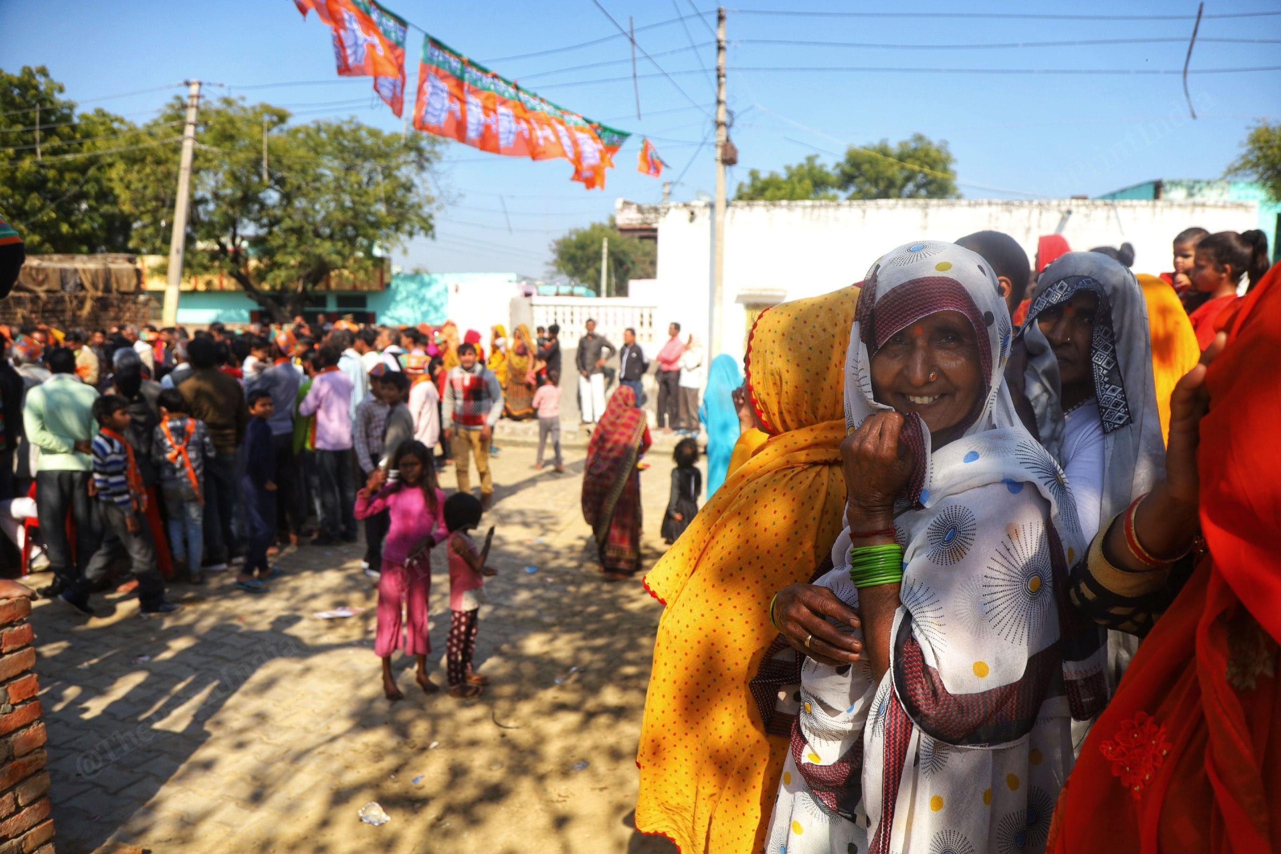 Lakshmi, who had come running from her home after listening to the hustle-bustle in her village, said, “Bola humne in admiyon ko hutne ke lie, ye sunte hi nahi humari. Abh toh hum unki awaz sunke hi khush hai.” (We asked the men in front to move, but they did not listen to us. We are happy that we can listen to her voice)