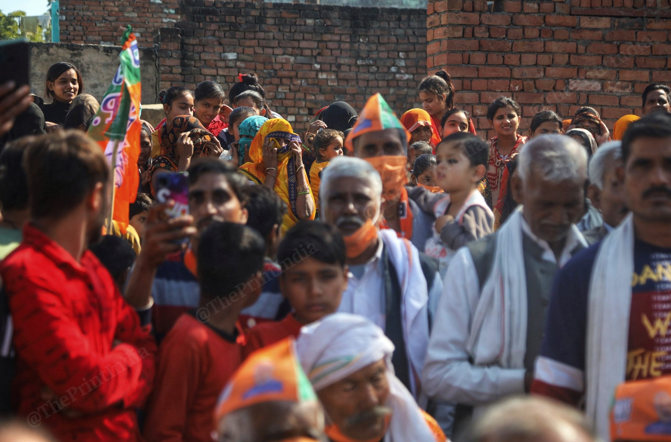 Lakshmi stood with 20 women at least 30 feet away from the area where BJP candidate from Agra, Baby Rani Maurya, was delivering her speech on 29 January. It was a door-to-door campaign in Agra, not any big rally or roadshow. It saw around 100 people gathered in an open space to see Maurya.