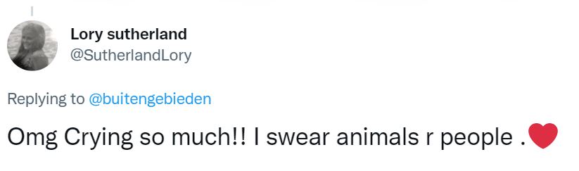 A third person wrote, “Omg Crying so much!! I swear animals r people.”