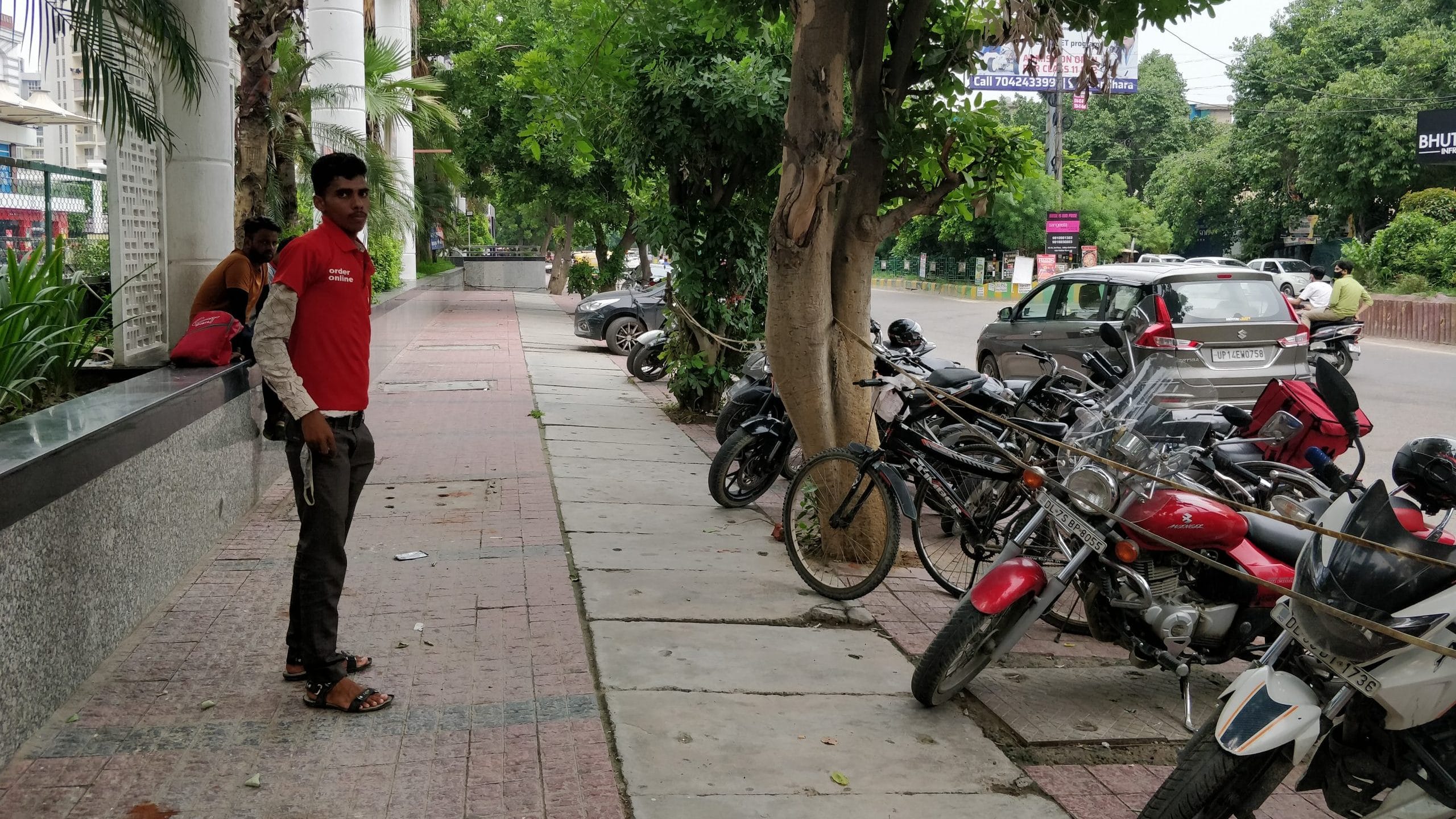 Obendra Yadav outside Indirapuram Habitat Centre, Ghaziabad getting ready to start his shift | Photo: Sonal Matharu | ThePrint
