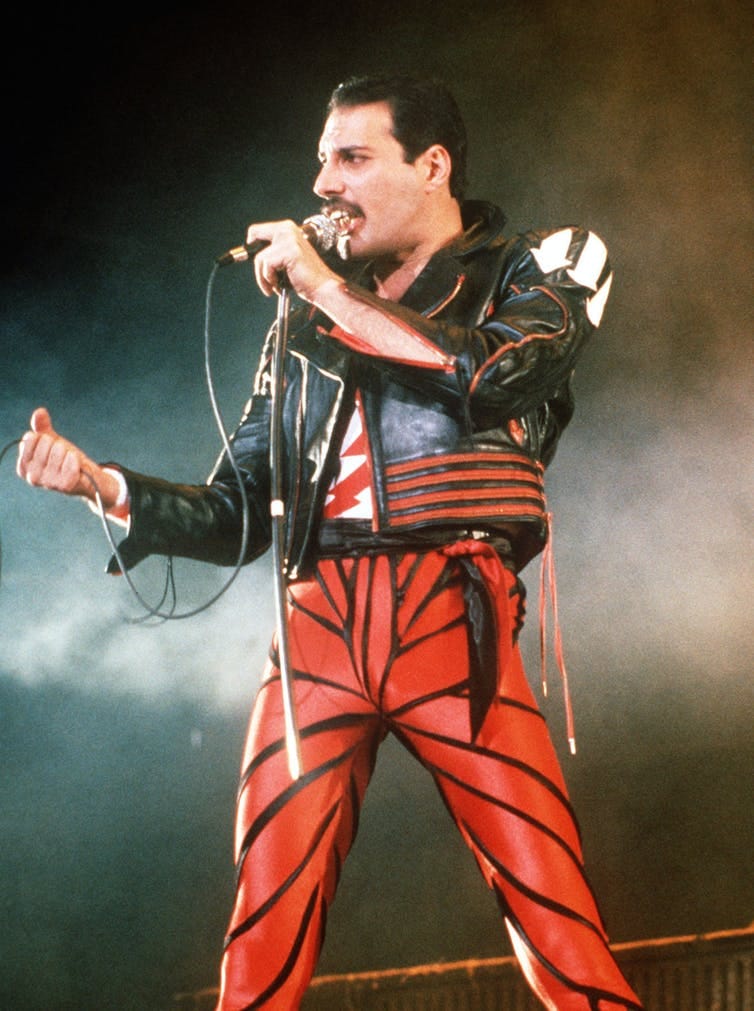 In the 1980s, Mercury ditched his glam rock look and cut his hair in a style popular in gay subculture, donning a black leather jacket and sporting an enviable, gorgeous mustache. Many fans hated it. In the U.S., they threw razors onstage.
