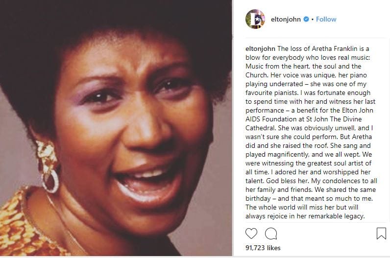 Let’s all take a moment to give thanks for the beautiful life of Aretha Franklin, the Queen of our souls, who inspired us all for many many years. She will be missed but the memory of her greatness as a musician and a fine human being will live with us forever. Love Paul pic.twitter.com/jW4Gpwfdts