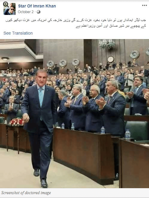 A photo of Pakistan foreign minister Shah Mehmood Qureshi created waves in Pakistan as it sought to show him receiving a standing ovation in the United Nations General Assembly. It was posted on 1 October.