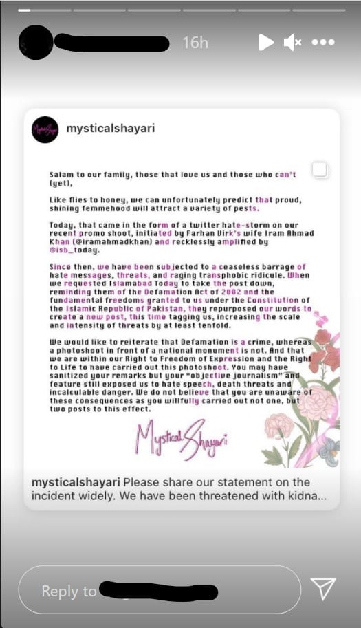 Many Pakistani social media users were angry over these pictures that appeared on the Instagram handle ‘mysticalshayari’. The Instagram account has now been deleted. However, screenshots continue to circulate on Facebook, Twitter and Instagram.
