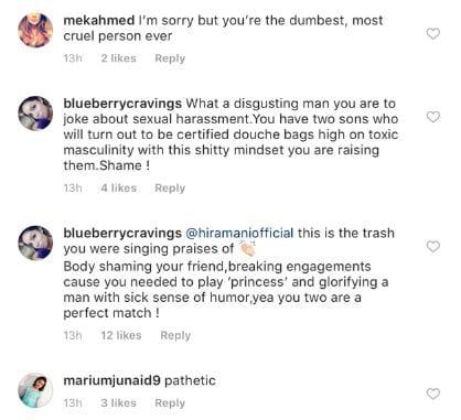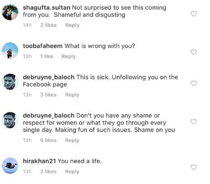 Manaal Fahim Khan, a local journalist in Pakistan, shared Mani’s post on Twitter saying “the crazy, raging, man-hating feminist in me has no words”.