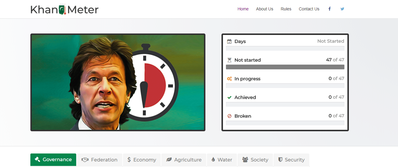 Taking a cue from ‘Obameter’, an online tool called ‘Khanmeter’ has been created to track progress on poll promises of Pakistan’s prime minister-elect Imran Khan, reports Arabian Business.