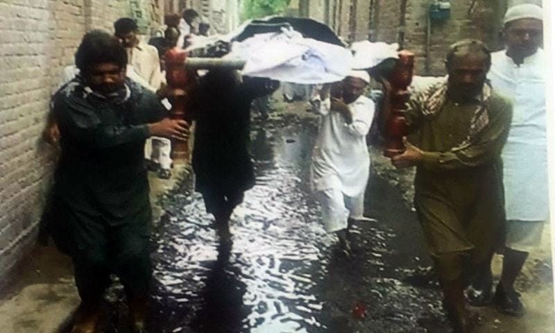 The Chief Justice of Pakistan (CJP), Saqib Nisar, took suo motu notice of a picture circulating on social media that showed a funeral procession passing through a sewage-filled narrow street.