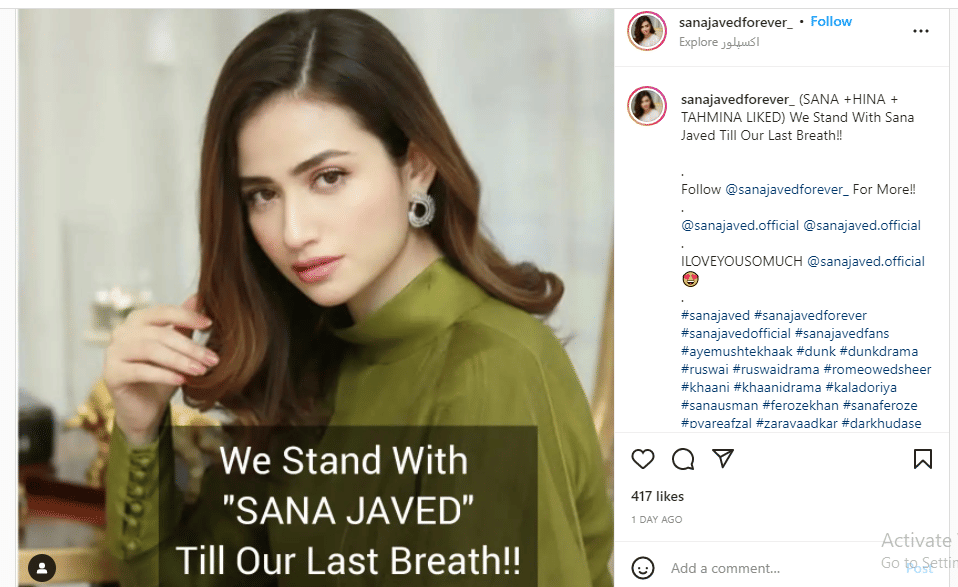 Fans have also expressed their support for Sana Javed, which she re-shared in her Instagram stories.