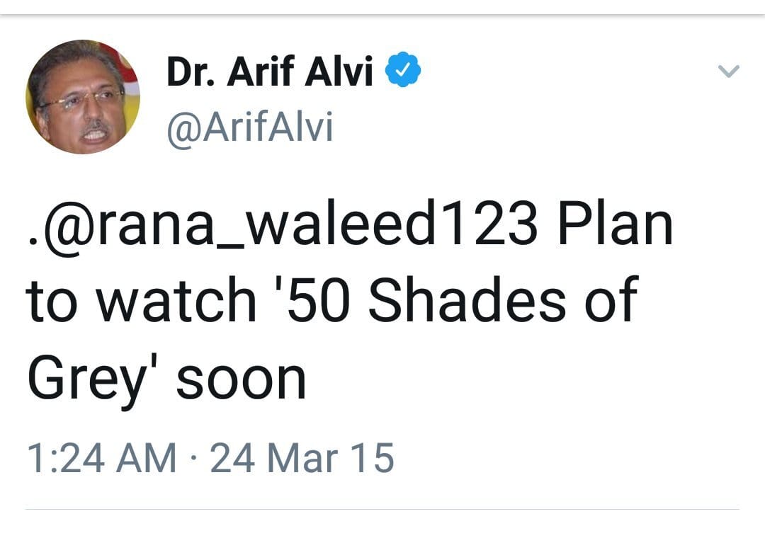 President Arif Alvi had previously tweeted about watching Fifty Shades of Grey in 2015 that was deleted only last month.