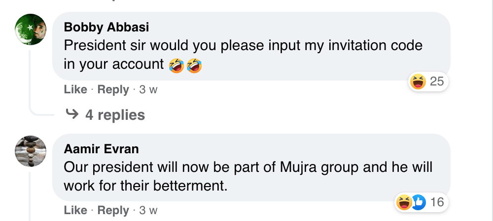On Facebook, users called for President Alvi to add their invitation code and said that he will “work for their betterment”.