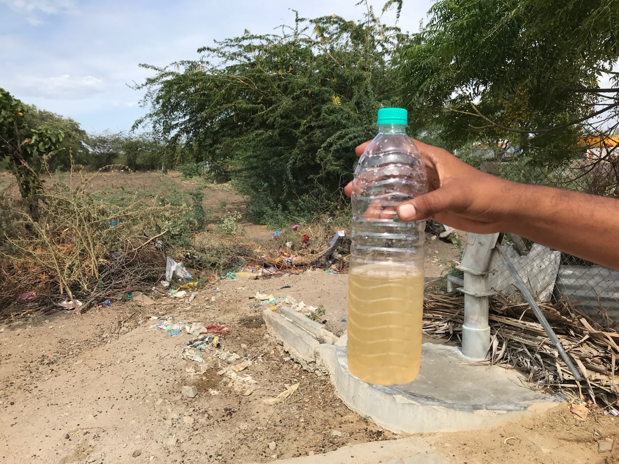 Back at Kumareddiyapuram, 60-year-old Neela pumped a borewell to fill half a bottle with a yellowish liquid and held it up.