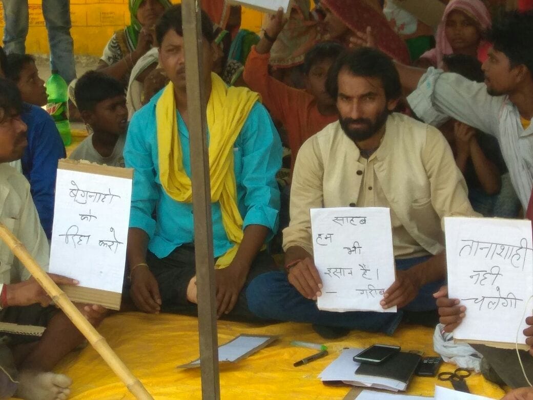 Among the demands raised at the sit-in are homes equipped with power and water connections, as well as the release of Kuldeep Bhartiya, who was arrested Monday for allegedly starting the fire. While the residents insist the cause of the fire remains unknown, police and the administration have said the source lay among the families.