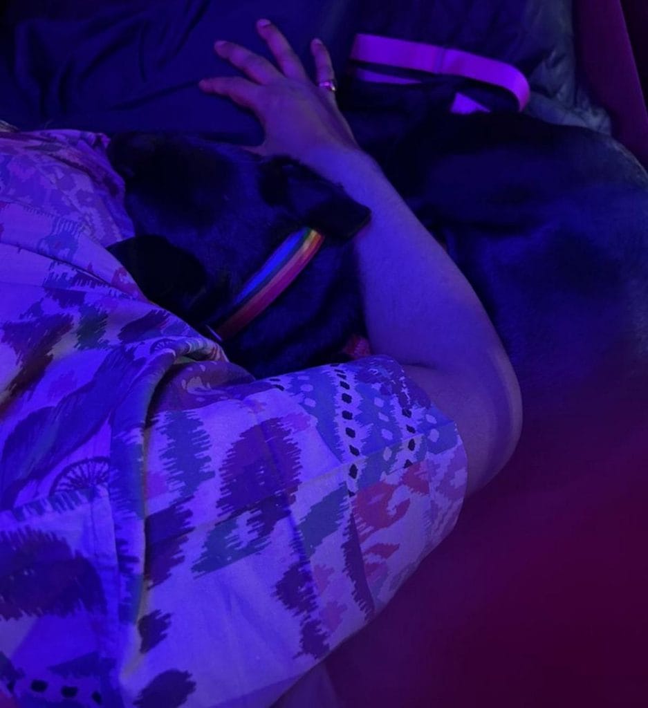 It was a longer ride than a regular overnight bus. The itinerary was built around the dogs: pee breaks, feeding stops, strolling time. At the first dhaba halt, the humans ran to the washroom while the dogs walked around. Deep into the night, the pet parents were still on duty — exchanging seats, adjusting positions. Taco rested her head on Bhawana’s lap. Zoey slept on Arunava’s. Suzie squeezed herself between Himanshu and his partner Srishti. All three would occasionally peer out of the window, then settle back down.