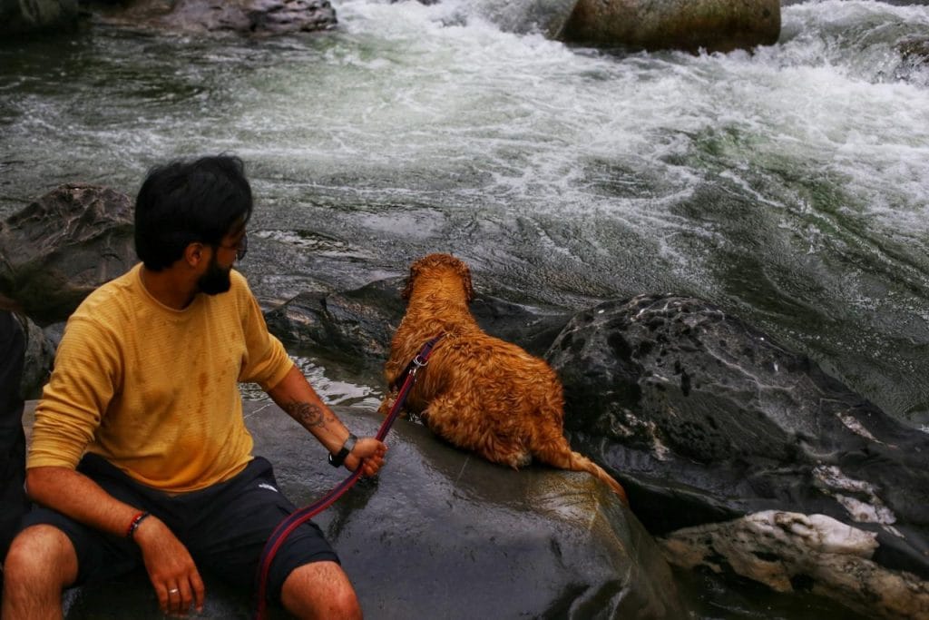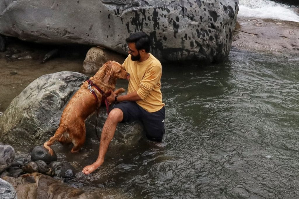 Finally, the group reaches the end of the 1-kilometre trek to the waterfall. But they have to wait. There’s a queue and the crowd will have to disperse before the dogs can have their turn. As soon as Furgetaway coordinator Ayush Singh finds a secluded spot, they get the green signal.
