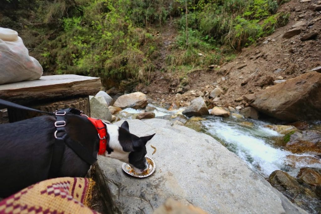 Traffic and landslides delayed the group by two hours. By the time they reached the homestay, lunch was waiting: chicken, eggs, vegetable stew, rice, and roti, much of it suitable for the pets to consume. The dogs were fed first, then the humans. Everyone was bright-eyed and bushy-tailed for the trek afterwards.