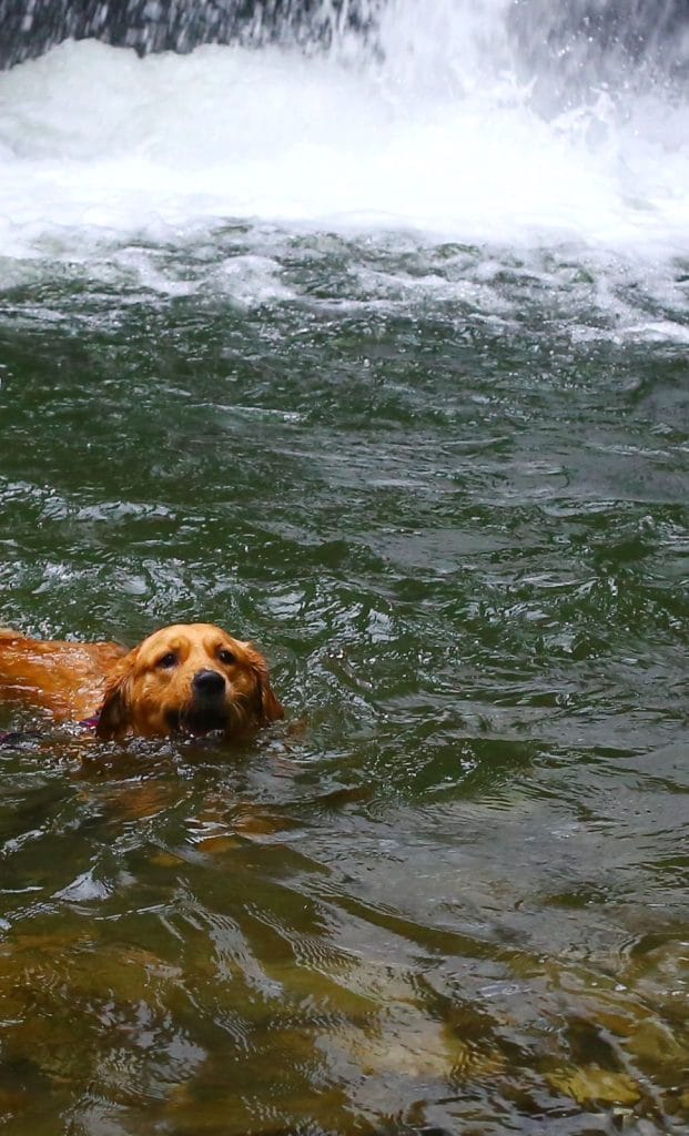 Suzie, however, has bigger plans. She looks expectantly at Himanshu and barks, insistent. He unclips the leash. She hops into the icy water and swims like a professional swimmer. He follows after her, marvelling that he didn’t know she was such a good swimmer.