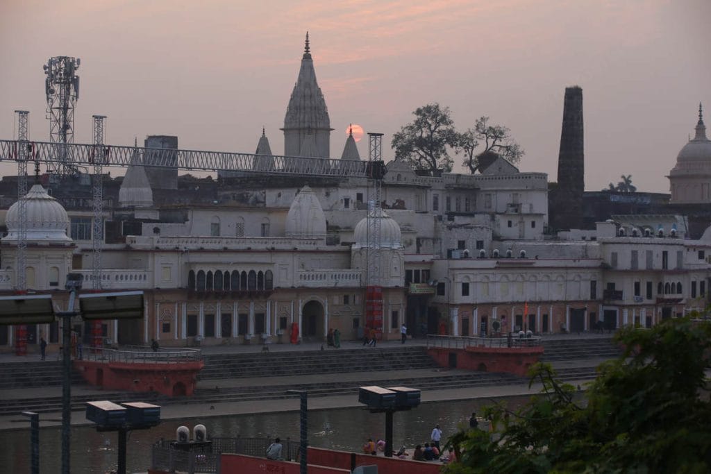 Ayodhya is buzzing with anticipation. Cranes towering over the cityscape shield the temple from curious eyes, but residents and tourists alike scramble onto rooftops to catch a sneak peek.