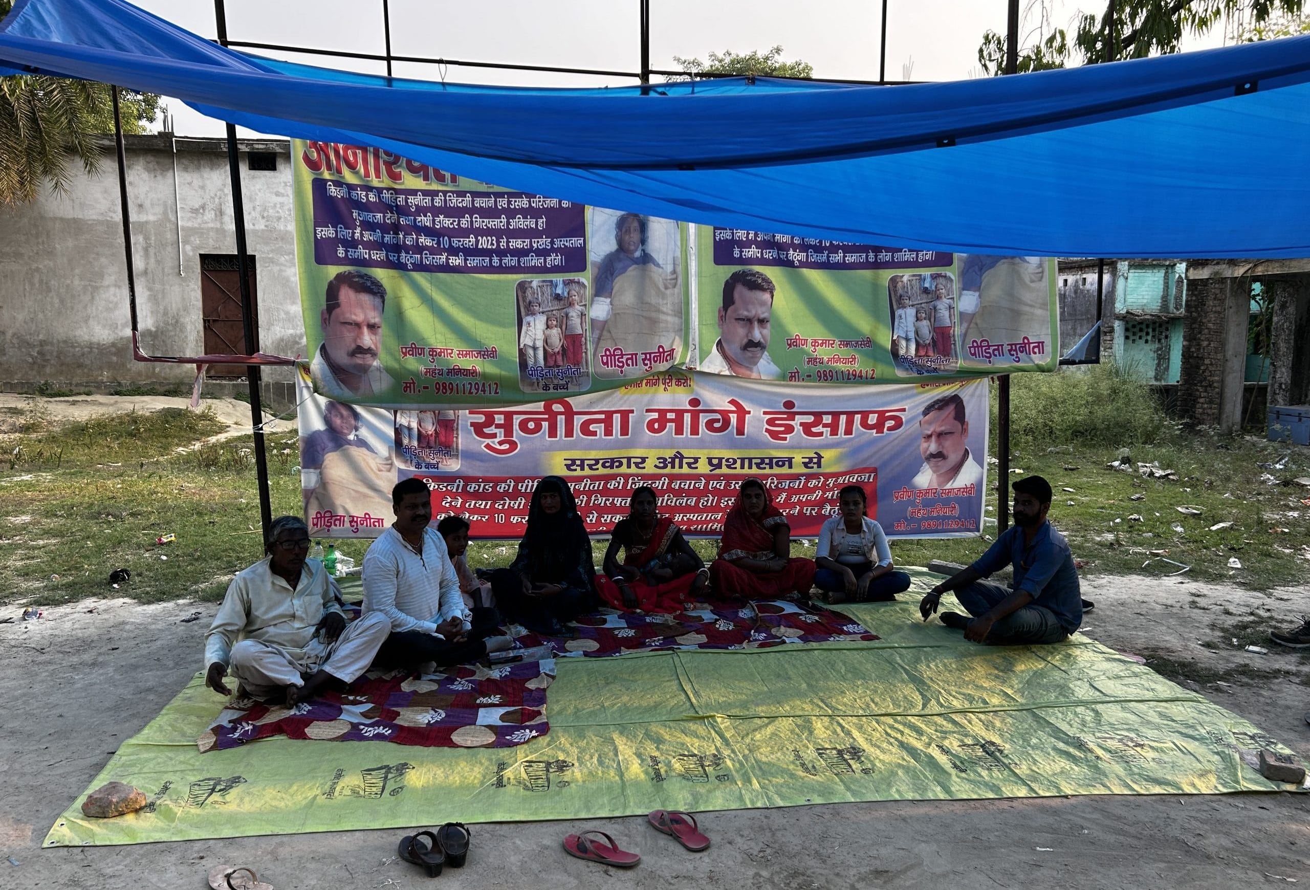 About 20 km away, a group of activists led by Praveen Kumar has been staging an indefinite protest under the banner of ‘Sunita maange insaaf‘ (Sunita demands justice) in front of the government referral hospital at Sakra Block. Praveen, a self-described social activist based in New Delhi, arrived in Sakra on 10 February and has been leading the protests since then. He has become a prominent figure rallying support for Sunita. Their demands include a kidney, Rs 25 lakh compensation for the family, and a government job for Sunita’s husband.