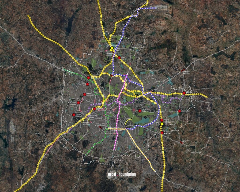 Bengaluru/Hyderabad: The virtual map of Bengaluru covered an entire floor. What stood out most were the missing pieces: 22 unfinished flyovers, an incomplete suburban railway, metro lines that haven’t materialised, patchy road networks. Architect Anvitha Nambiar of the urban action group MOD Foundation pointed it all out, step by step, to residents.