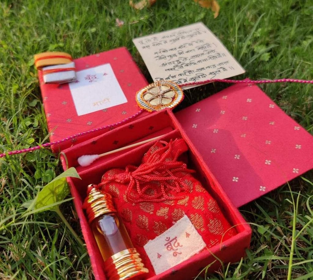 Instead of the usual small vials, his attars come in sleek cylindrical bottles wrapped in cloth pouches, each paired with a handwritten poem. For Rakshabandhan, he created a special edition with a custom verse: “Yun to hai bandhan lekin par is dhaage me such hi such hai” (Though it is a bond, this thread is full of truth).