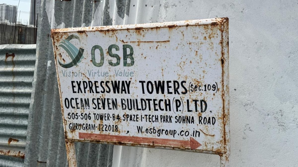 Outside the complex, a rusted board reads, ‘OSB. Expressway Towers Sector 109, Sohna Road.’