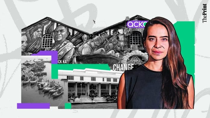 Delhi: Mexican artist Paola Delfín balanced herself on a crane inside Sassoon Docks in Mumbai to add the finishing touches to her 40ft mural on the walls of a dilapidated building.