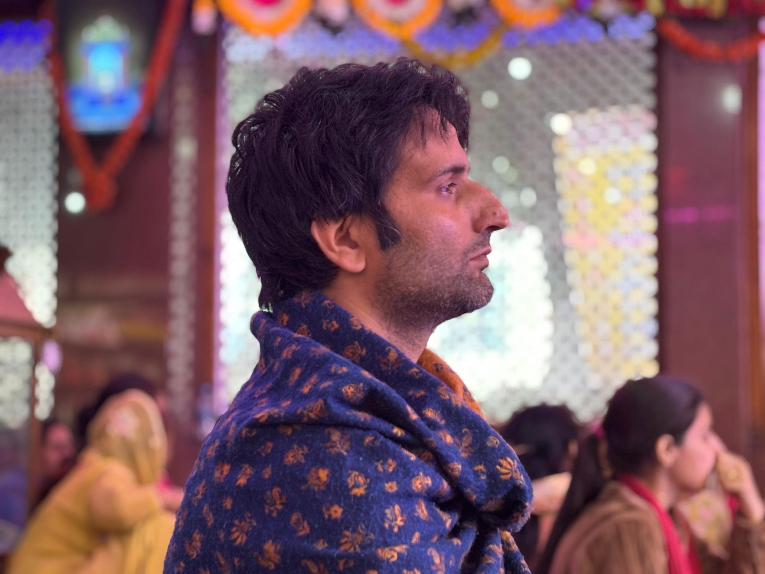 The temple bell swings as a young girl jumps to touch it. Wearing a bright yellow kurta, Sunny Raina lifts her up so she can ring the bell. Another woman, a dupatta draped over her head, enters with a bowl of kheer in her hands. It is Zyestha Aashtami, Kheer Bhawani mela. It’s the biggest annual festival of Kashmiri Pandits. She places it in front of the goddess, seated inside a mirror alcove.