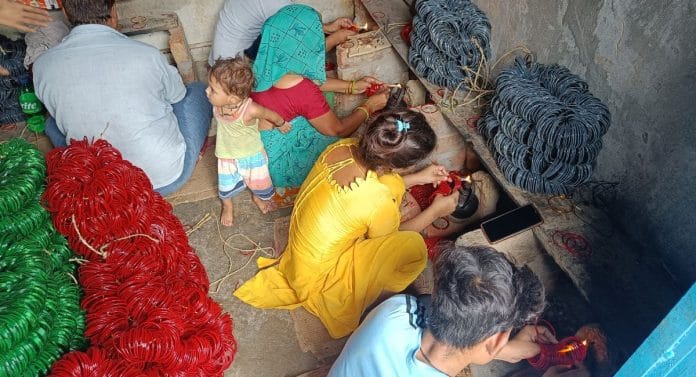 Kunwar Sen, who has been engaged in bangle making for three decades, said they “never used any gloves or masks” when joining the bangles.