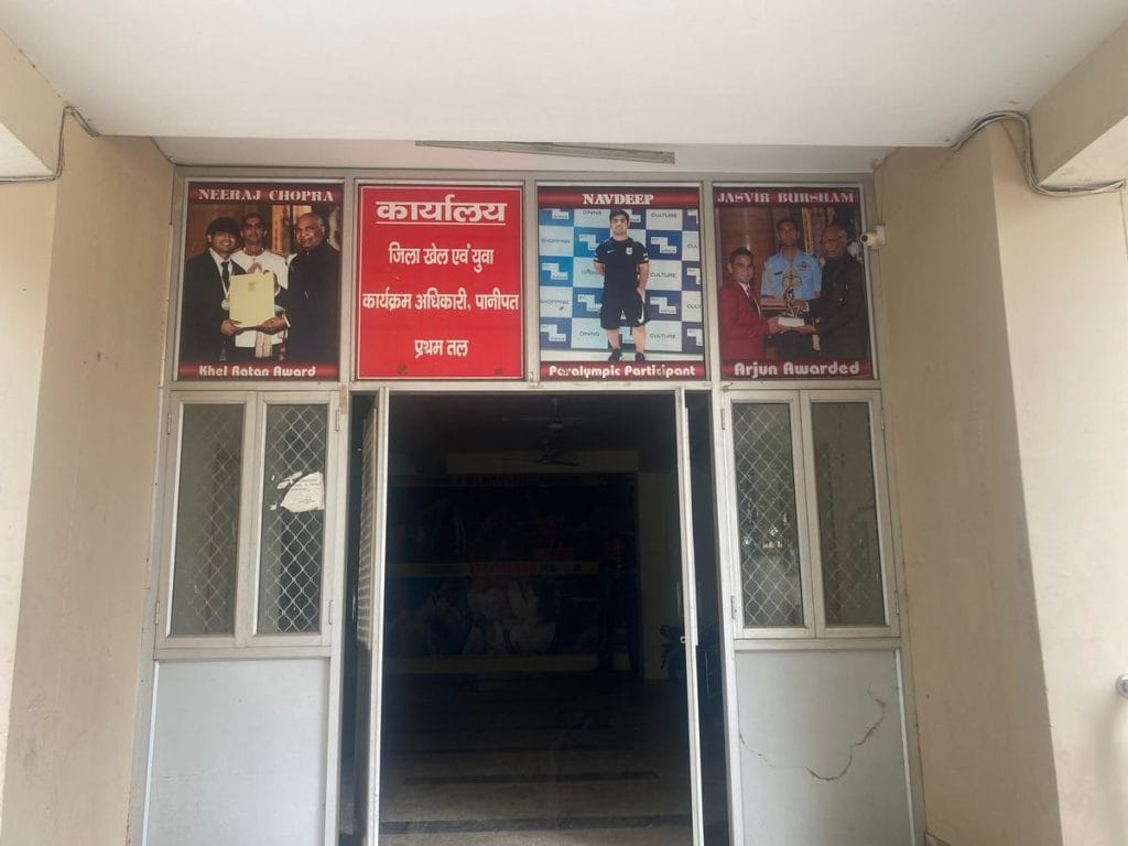 Neeraj threw his first javelin as a young teen at the Shivaji Stadium in Panipat. Today, the stadium proudly displays a photograph of him above its doors, alongside those of other top athletes from the region.