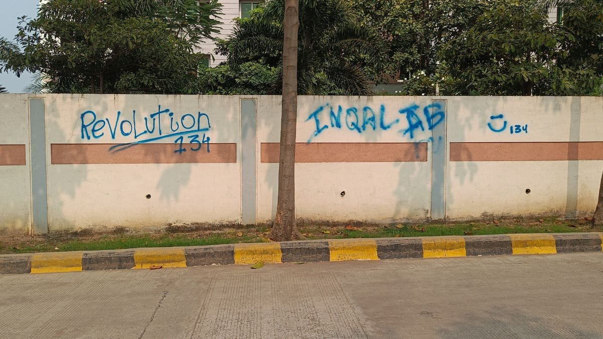 The scars of the violent Tuesday night are fresh on the campus. Burned vehicles, shattered glass, and broken doors reveal the horrors. The walls of the women’s hostel painted in blue ink with the words Revolution and Inquilab.
