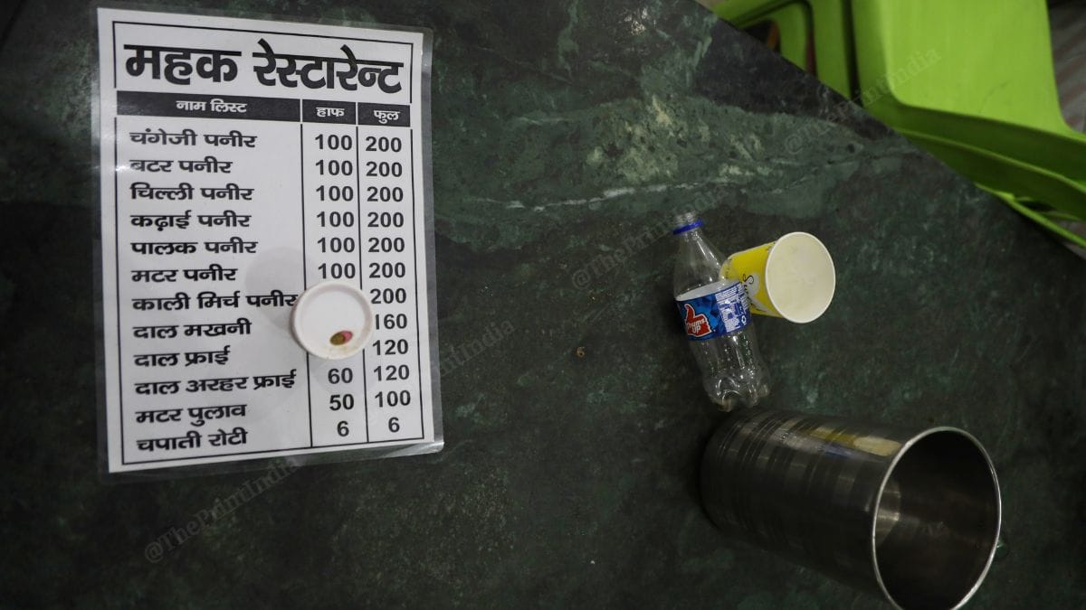 Last week, as Hussain rolled up the shutters for ThePrint, two policemen showed up too. Dust covered tables, laminated vegetarian menu cards strewn around, and a locked kitchen room did not convince the policemen that Mehak restaurant had been shut. They took photos of a flex board inside the shop, which had images of chicken dishes.