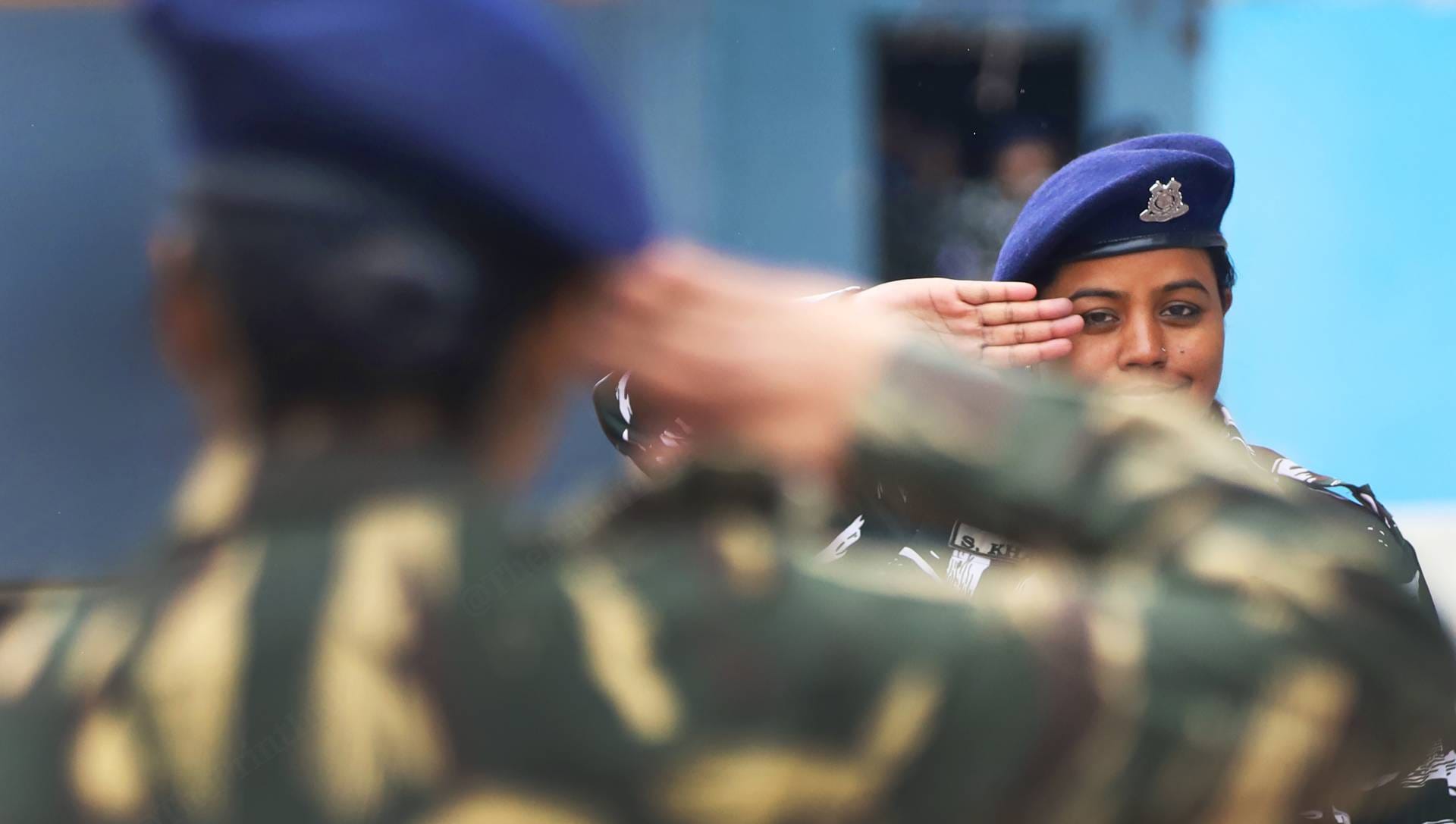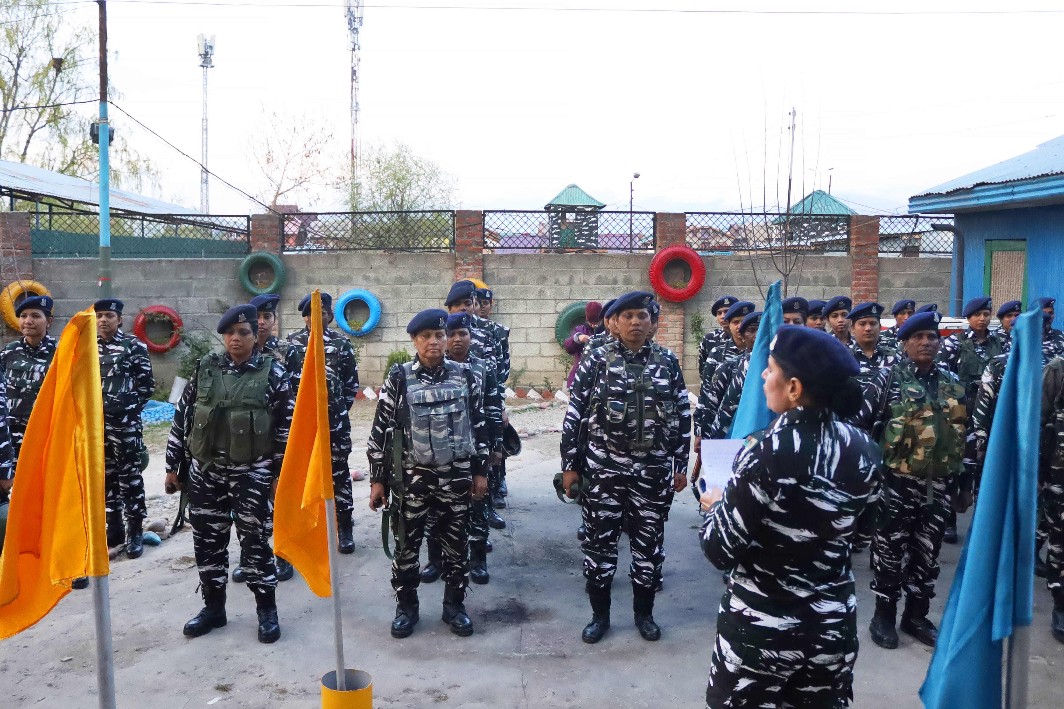 “Sabhi jawan duty jaane ke liye tayyar hai? (Are all the soldiers ready for duty?)” sub-inspector Basanti asks. “Yes, ma’am!” the women jawans answer in unison. “Be polite and calm with visitors at checkpoints,” she reminds them before briefing Deputy Commandant Yamini.