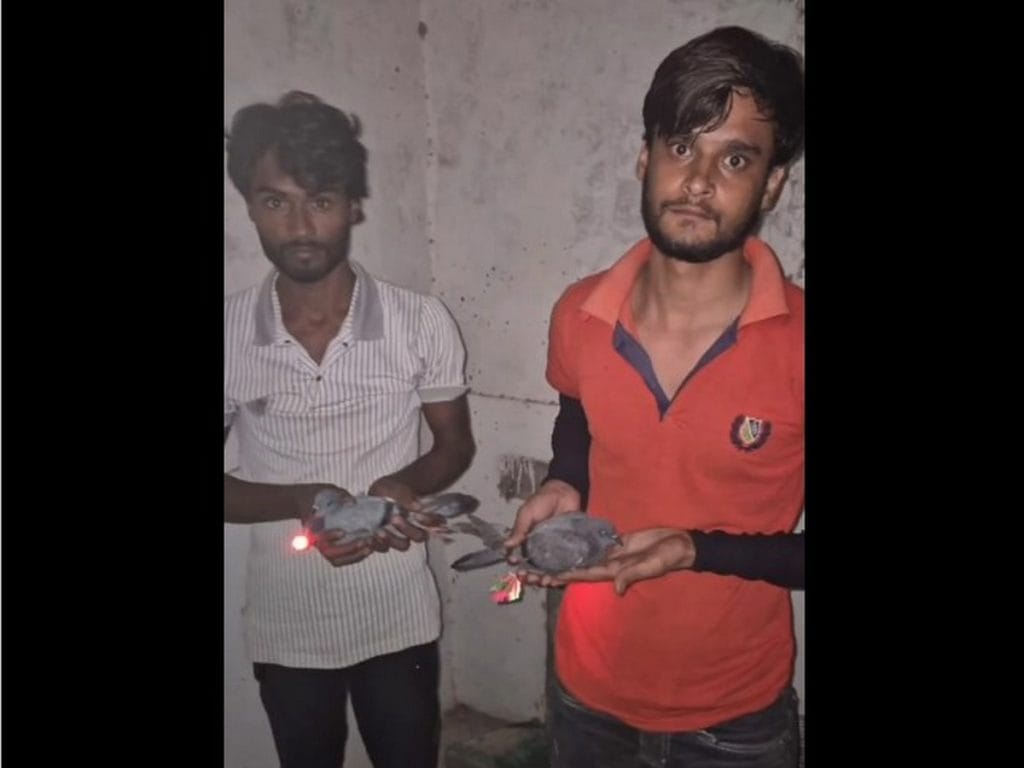 A case was registered at Kakrauli police station. Police called in the press. Shoib, Sakib, the two pigeons, the LED lights, all in the same frame. The two held one pigeon each. The SSP announced a reward of Rs 20,000 to the team that cracked the case.