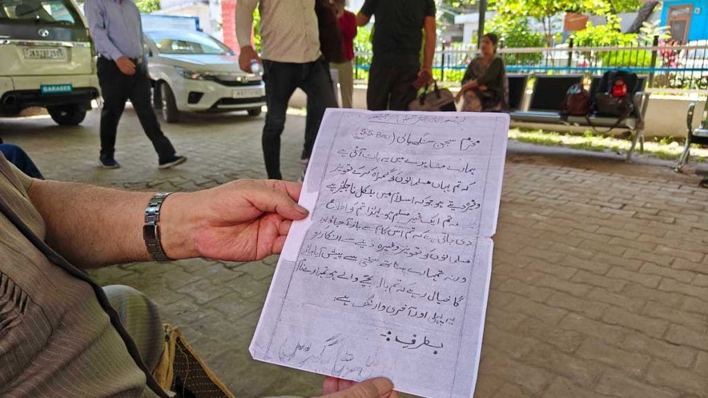 He clears his throat and begins to read: “Bismillah-ir-Rahman-ir-Rahim. We have come to know that you are giving tabeez to young Muslims and converting them. This is the first and final warning to you.”