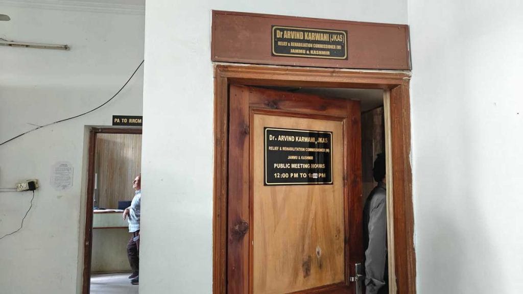 One by one, the claimants are called into a room behind a two-toned wooden door. Inside, ADC Bandipora Zaffar Hussain Shawl is flanked by Relief Commissioner Karwani and a team of officials. As they enter, most of the Kashmiri Pandits offer a polite “aadab” as a greeting.