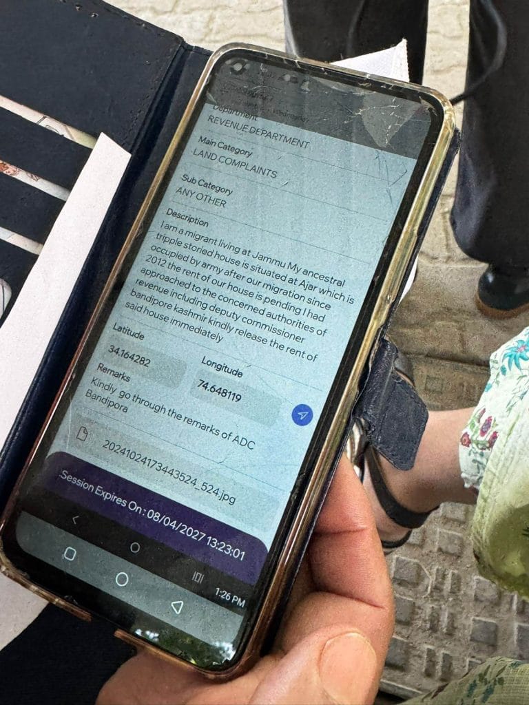 He registered his complaint on the portal. It reads: “My ancestral triple storied house is situated at Ajar which was occupied by the army after our migration. Since 2012, the rent of our house is pending. I had approached the concerned authorities of revenue including the deputy commissioner of Bandipora in Kashmir. Kindly release the rent of the said house immediately.”