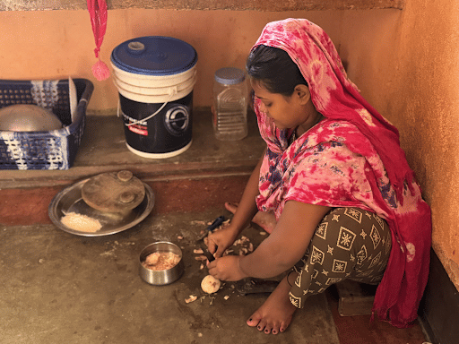 She points to a tall woman in a maroon dress standing nearby. “This is Fatima Khatoon,” Savera says. “She joined us last year after her husband left her for another woman, leaving her and her daughter with nothing. She was on the verge of begging.”