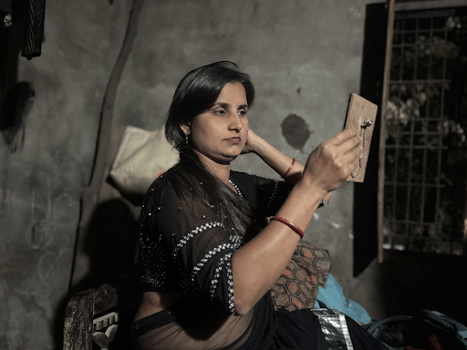 Karishma knows her time on stage is limited. She tells people she’s 25, though she’s actually closer to 35. When two potential clients arrive to book her for a show, she quickly applies foundation to lighten her skin.