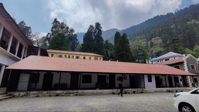 Several buildings have come up nearby, forming a massive complex with winding roads, gravel pathways, deodar trees, and a view of the mountains.