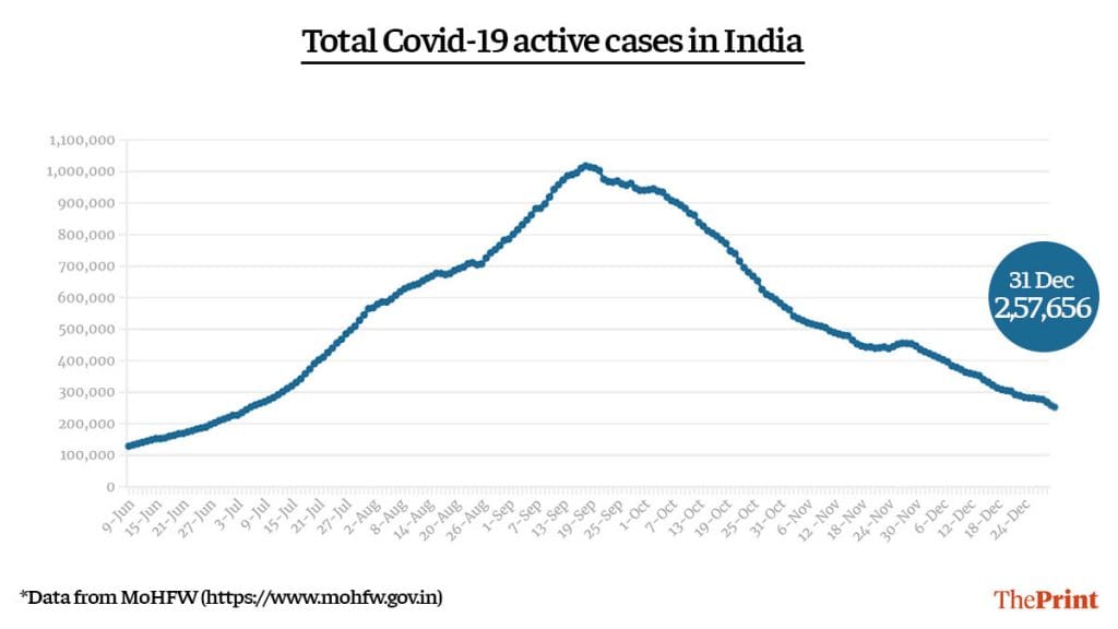 New Delhi: India’s total active cases fell below 2.6 lakh in the last 24 hours. However, the Indian SARS-CoV-2 Genomics Consortium (INSACOG) — a consortium of 10 government labs conducting genome sequencing — has found a total of 25 cases of the mutated virus, which originated in the UK, in India.