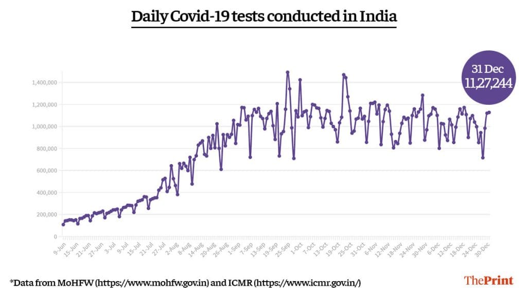 In the last 24 hours, 11,27,244 Covid-19 tests were conducted across 1,200 government and 1,089 private laboratories.