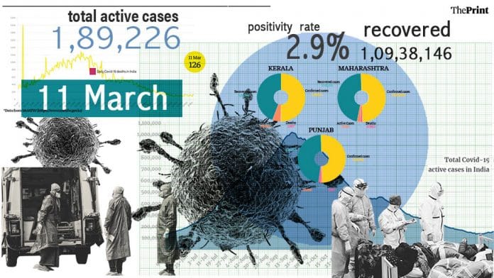 After declining for two days, active cases in India once again rose to 1,89,226. The highest number of active cases is being reported by Maharashtra, followed by Kerala, Punjab, Karnataka and Tamil Nadu.