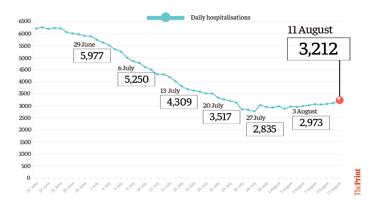 However, there was an increase on 29 July, with hospital admissions going up to 3,028. Nevertheless, between 30 July and 4 August, hospitalisations remained below 3,000 as mentioned above. From 5 August onwards, daily hospitalisations once again rose above 3,000.