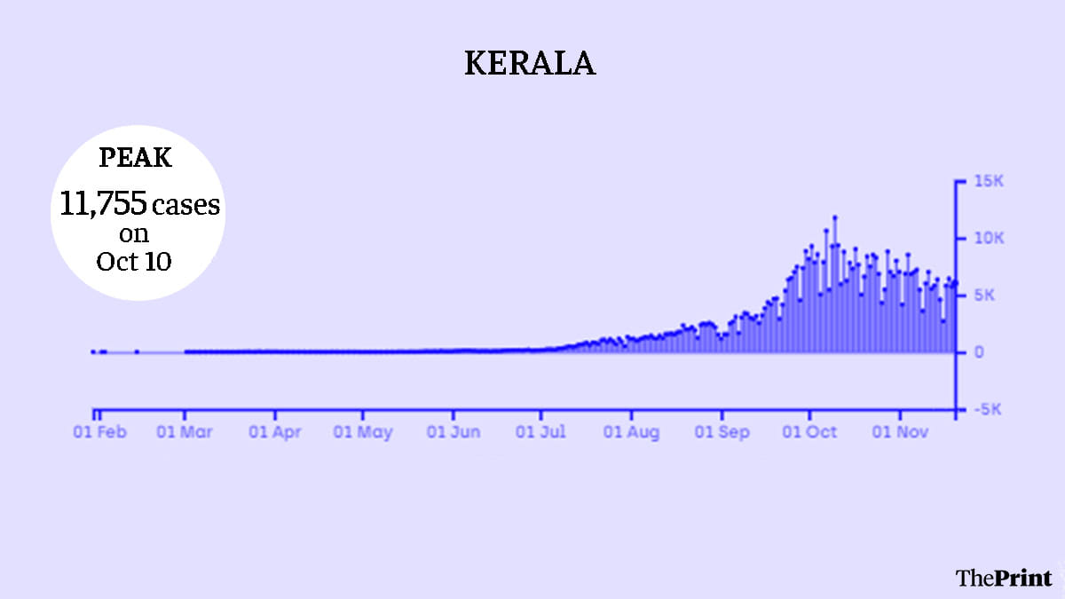 While Kerala was seen as a model of Covid management during the initial days of the pandemic, the state added 1,41,924 cases in just over a month — from 22 August to 30 September after the 10-day Onam festival. The surge in cases continued till mid-October in the state, which has seen a total of 5,62,696 cases till date.