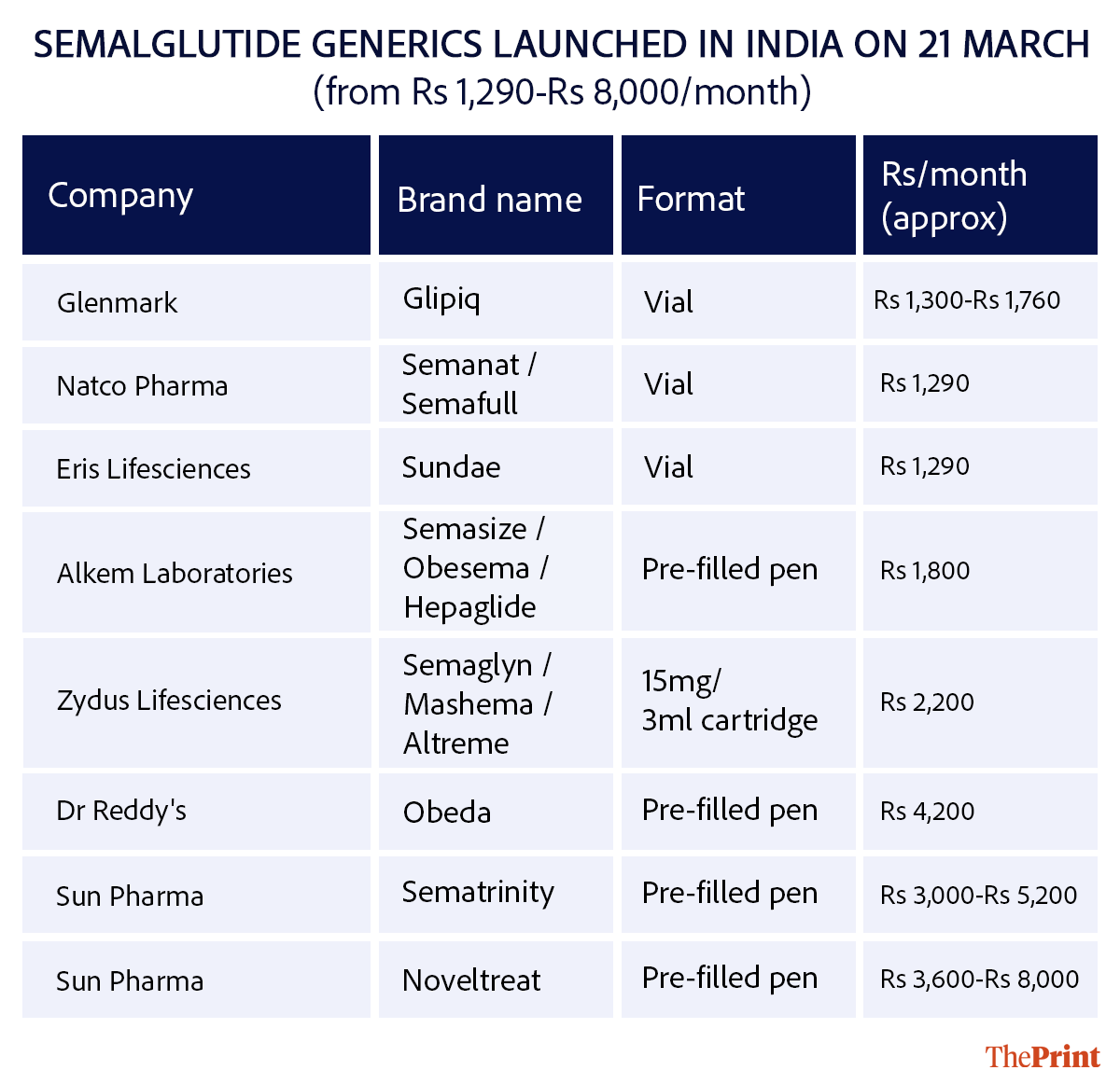 India’s semaglutide market now offers a wide range of options across price points and delivery formats, from basic vials to more convenient pre-filled pens and cartridges. ThePrint compares the options.