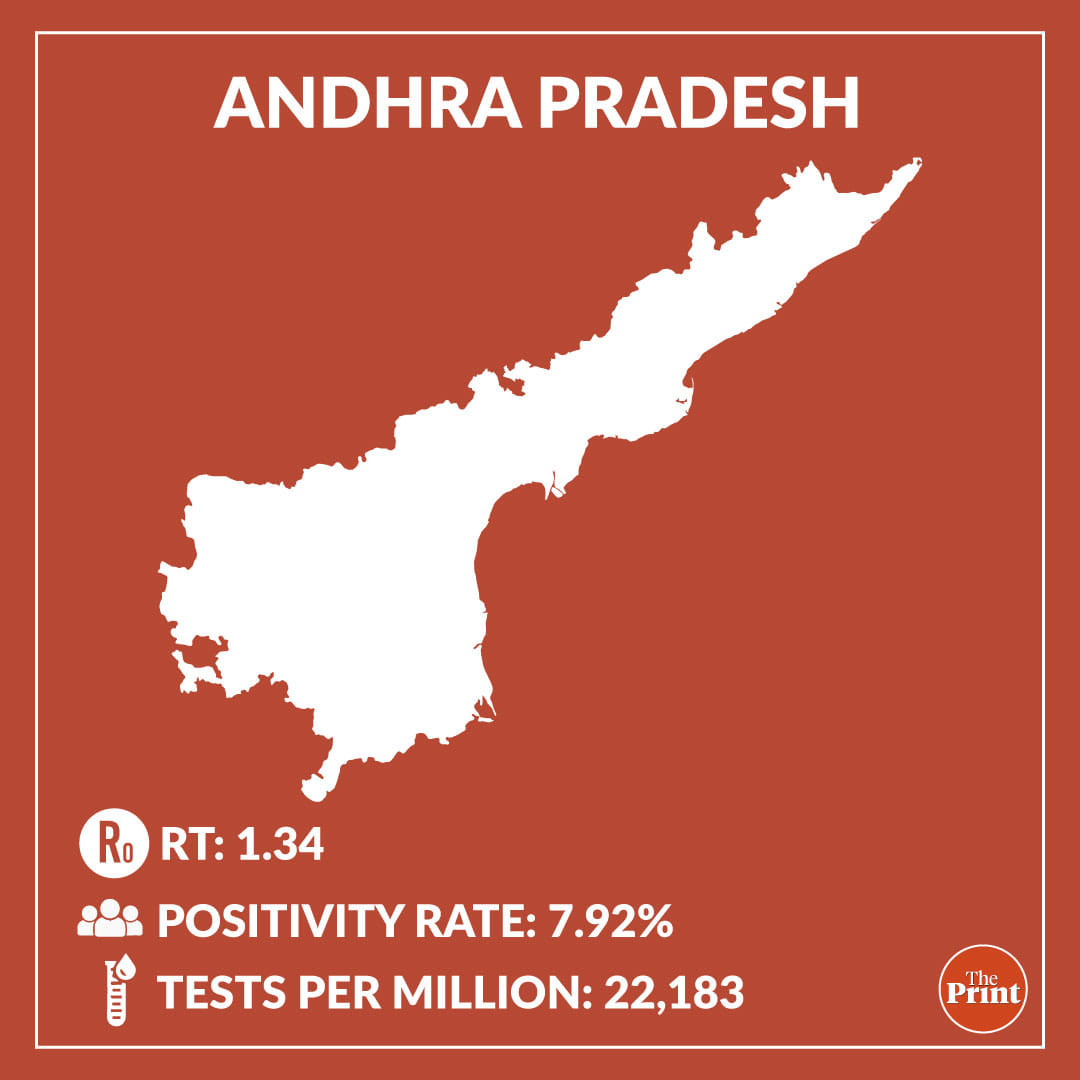 Andhra Pradesh’s Rt value is 1.34 and positivity rate is 7.92 per cent. The state Wednesday recorded its highest single-day spike of 2,432 cases, taking the total past the 35,000 mark. It has conducted 22,183 tests per million so far.