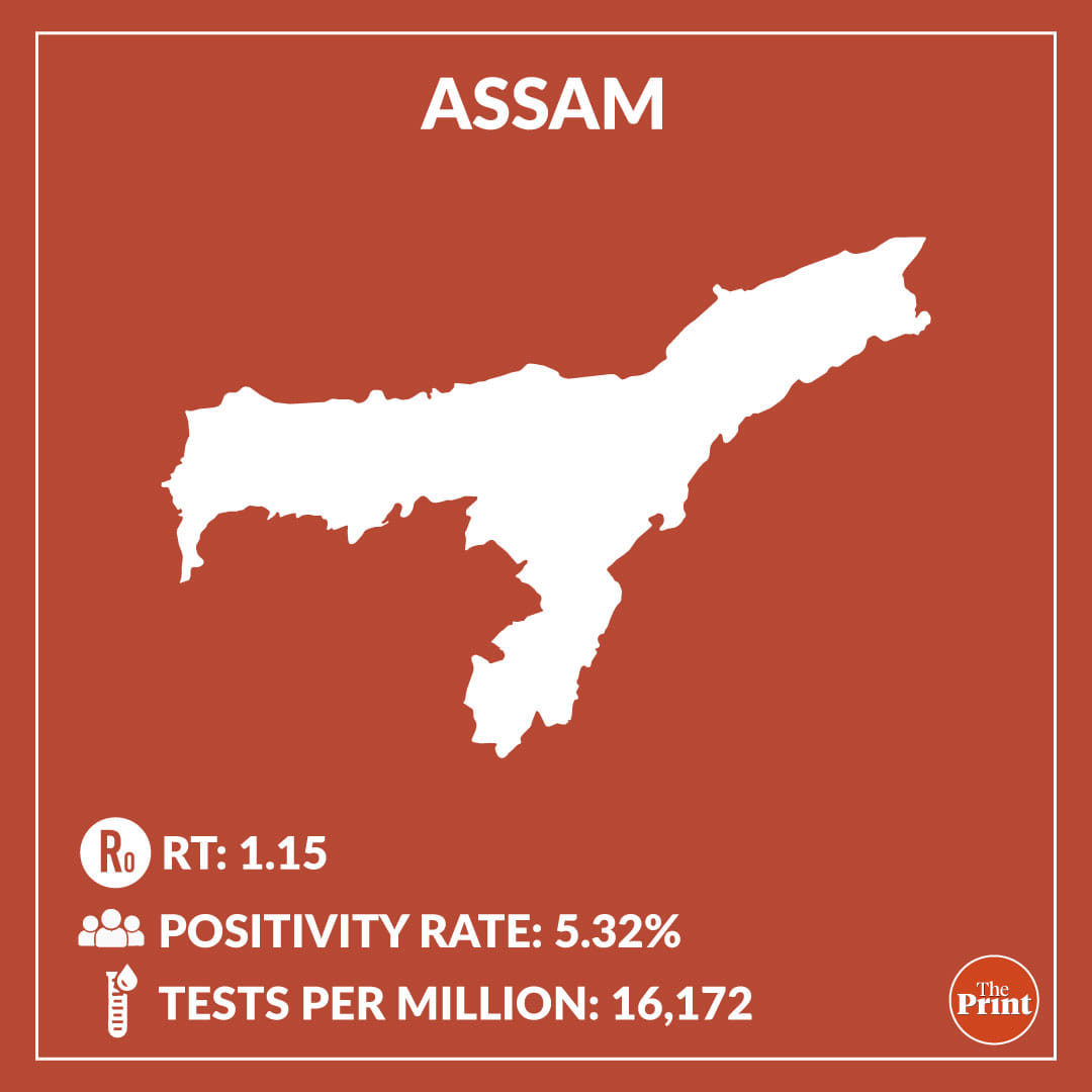 Assam has recorded an Rt value of 1.15. The recent surge in cases has been led by Kamrup district, which has seen infections increased by 26 per cent in the last two days. The overall positivity rate in Assam is 5.32 per cent, while conducting 16,172 tests per million so far.
