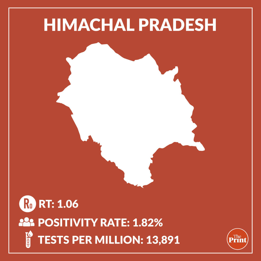 Himachal Pradesh has reopened its borders to tourists, and on 13 July, over 700 tourists reportedly visited state. The state has an Rt value of 1.06 and has recorded the lowest positivity rate in the country, at 1.82 per cent. It is conducting 13,891 tests per million.