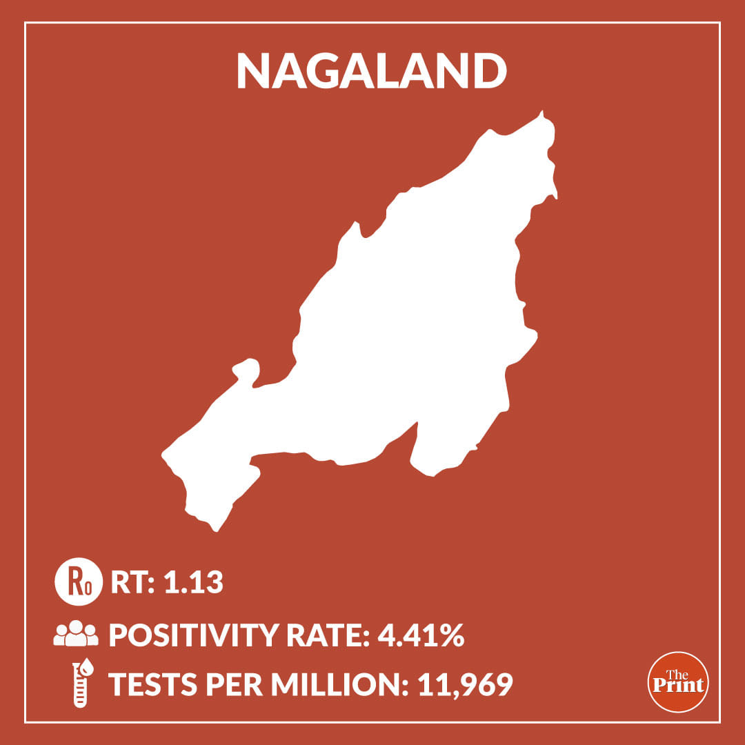 Nagaland has an Rt value of 1.13 and a positivity rate of 4.41 per cent. It has conducted 11,969 cases per million so far. On 14 July, the state recorded its highest single-day spike with 71 cases.